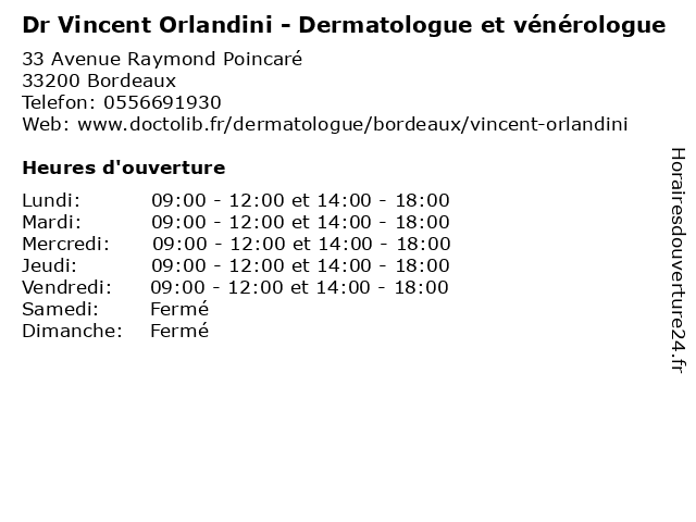 1 Dr Latifa Handiri-Gencel - Dermatologue - secrétariat (Distance: 0,09 km) 33 Avenue Raymond Poincaré, 33200 Bordeaux consultation, dermatologue, docteur, dr, gencel, handiri, latifa, med, médecin, médecine, secrétariat, traitement 2 Dr Lucile Boursault - Dermatologue - secrétariat (Distance: 0,09 km) 33 Avenue Raymond Poincaré, 33200 Bordeaux boursault, consultation, dermatologue, docteur, dr, lucile, med, médecin, médecine, secrétariat, traitement 3 Dr Isabelle Heliot-Hosten - Dermatologue - secrétariat (Distance: 0,09 km) 33 Avenue Raymond Poincaré, 33200 Bordeaux consultation, dermatologue, docteur, dr, heliot, hosten, isabelle, med, médecin, médecine, secrétariat, traitement 4 Dr Melissa Mignard-Guillaume - Dermatologue et vénérologue (Distance: 0,95 km) 45 Avenue Bel air, 33200 Bordeaux dermatologue, docteur, dr, et, generaliste, guillaume, medical, melissa, mignard, soin, vénérologue 5 Dr. Laurence Goyat-Labbe - Dermatologue et vénérologue (Distance: 1,20 km) 75 Avenue Saint Amand, 33200 Bordeaux consultation, dermatologie, dermatologue, docteur, dr., et, goyat, labbe, laurence, santé, vénérologie, vénérologue 6 Dr Valérie Wickers - Dermatologue et vénérologue (Distance: 1,20 km) 75 Avenue Saint-Amand, 33200 Bordeaux dermatologue, docteur, dr, et, medecin, navarre, sante, services, valerie, valérie, vénérologue, wickers |