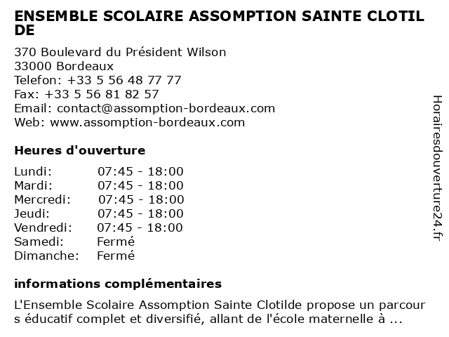 | Lundi | 07:45-18:00 |