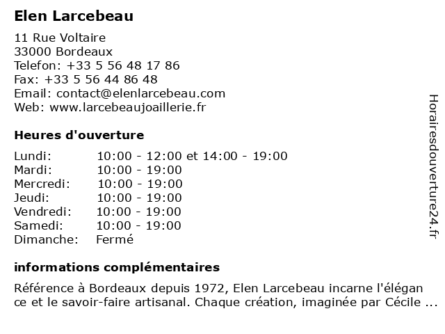| Lundi | 10:00-12:00 et 14:00-19:00 |