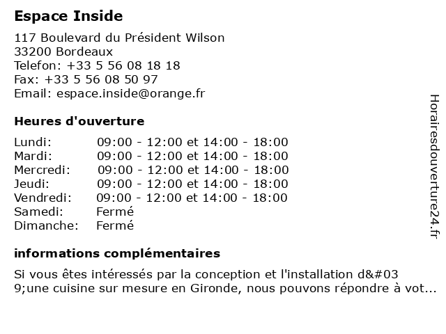 | Mardi | 09:00-12:00 et 14:00-18:00 |