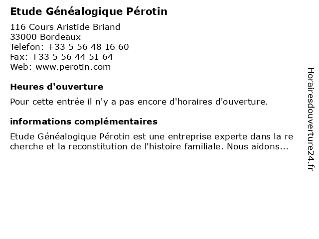 | Appeler Etude Généalogique Pérotin | |