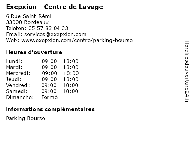 1 Exepxion - Centre de Lavage (Distance: 4,27 km) 90 Avenue des Quarante Journaux, 33300 Bordeaux auto, centre, de, exepxion, lavage, lustrage, nettoyage, véhicule 2 Belle & Bio - Lavage Auto (Distance: 0,71 km) 1 Place Pey Berland, 33000 Bordeaux auto, belle, bio, centres, lavage, station lavage, écologique 3 Belle & Bio - Lavage Auto (Distance: 1,07 km) 57 Rue du Château d'Eau, 33000 Bordeaux auto, belle, bio, centres, lavage, station lavage, écologique 4 TOTAL Wash - Centre de Lavage (Distance: 2,24 km) 127 Cours du Medoc, 33000 Bordeaux centre, de, entretien, groupe, lavage, lavages, total, véhicules, wash 5 Lavage Auto (Distance: 4,66 km) . Avenue Quarante Journaux, 33300 Bordeaux auto, cafe, chaussures, enfants, homme, lavage, mode femme, restaurant, sport 6 Station de Lavage (Distance: 4,66 km) . Avenue Quarante Journaux, 33300 Bordeaux cafe, chaussures, de, enfants, homme, lavage, mode femme, restaurant, sport, station |