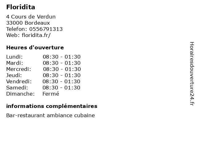 | Lundi | 08:30-01:30 |