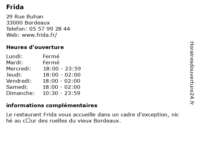 1 Restaurant Frida (Distance: 0,01 km) 27-29 Rue Buhan, 33000 Bordeaux frida, head, mary, max, potatoz, restaurant, restaurants 2 L'Atelier des Coachs (Distance: 1,11 km) 29 Rue de Tauzia, 33800 Bordeaux accompagnement, bordeaux, coachs, des, l'atelier, lieu, métiers, pratique, échange 3 Musée des Compagnons du Tour de France (Distance: 1,43 km) 112 Rue Malbec, 33800 Bordeaux compagnons, de, des, du, france, lieu unique dédié au compagnonnage, musée, ses traditions et son actualité., tour 4 Restaurant Le Beau Lieu (Distance: 1,44 km) 145 Rue de Saint- Genès, 33000 Bordeaux bar, beau, brasserie, café, le, lieu, restaurant, restauration 5 Médiathèque La Source (Distance: 4,05 km) . Place Gambetta, 33110 Le Bouscat de convivialité, développement de la lecture, la, lieu de vie, médiathèque, source 6 Aquitaine Cap Métiers (Distance: 8,16 km) 102 avenue de Canéjan, 33600 Pessac aquitaine, cap, et de ressources, lieu d'information, métiers |