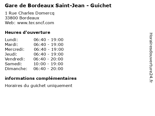 Termes de recherche pour Gare de Bordeaux Saint-Jean - Guichet:restaurant, de, bordeaux, saint, jean, gare, tabac, presse, services, boutique, transport, guichet, défibrillateurs |