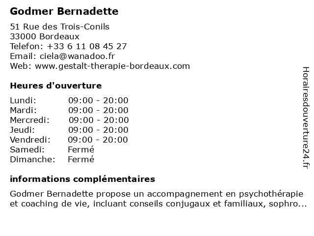 | Samedi | Fermé |