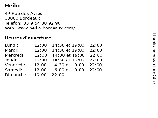 | Mardi | 12:00-14:30 et 19:00-22:00 |