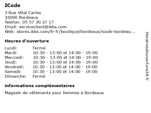 | Samedi | 10:30-13:00 et 14:00-19:00 |