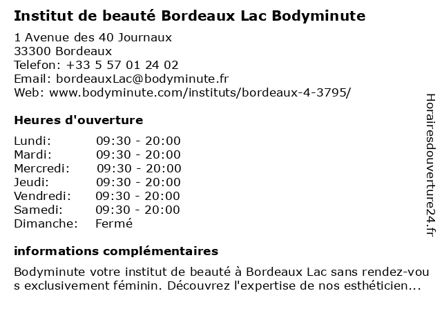 Termes de recherche pour Institut de beauté Bordeaux Lac Bodyminute:de, bordeaux, lac, beauté, institut, bodyminute |