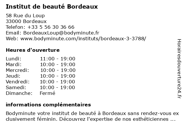 1 Institut de beauté Bordeaux (Distance: 4,83 km) 1 Avenue des 40 Journaux, 33300 Bordeaux beauté, bordeaux, de, institut 3 La Beauté de Thaïla - Esthétique et Coiffure (Distance: 0,39 km) 34 Route de Bordeaux, 37170 Tours beaute, beauté, coiffure, célia, de, esthétique, et, institut, la, maquillage, permanent, produits, sante, thaïla 4 Institut de beauté Mer Morte (Distance: 0,40 km) 71 Rue des Remparts, 33000 Bordeaux beauté, bien-etre, de, epilations, institut, massages, mer, morte, relaxation, santé, thérapies 5 La Bordelaise Institut (Distance: 0,41 km) 13 Place Puy Paulin, 33000 Bordeaux beauté, bordelaise, cils, cosmétiques, extensions, institut, la, personnels, salon, soins 6 INSTITUT MAHLER - BORDEAUX (Distance: 0,47 km) 52 Cours du Chapeau-Rouge, 33000 Bordeaux bordeaux, institut, mahler |