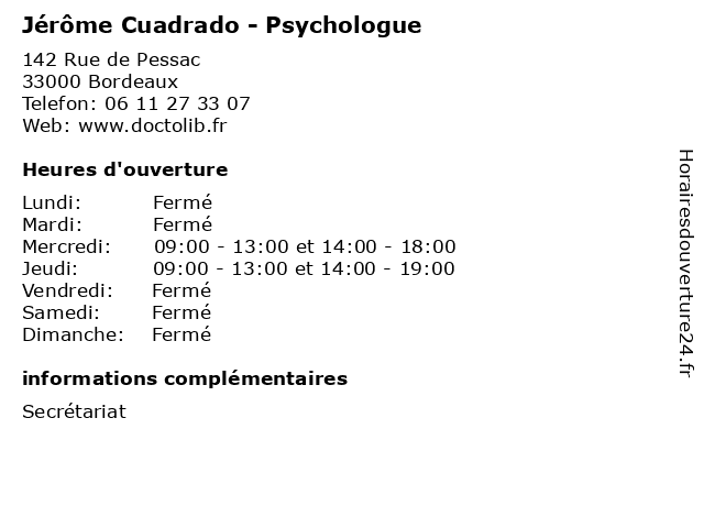 | Jeudi | 09:00-13:00 et 14:00-19:00 |