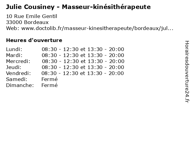 | Lundi | 08:30-12:30 et 13:30-20:00 |