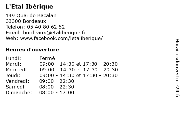 | Mardi | 09:00-14:30 et 17:30-20:30 |