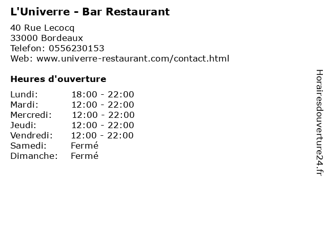 Termes de recherche pour L'Univerre - Bar Restaurant:restauration, restaurant, boissons, bar, cuisine, restaurants, l'univerre |