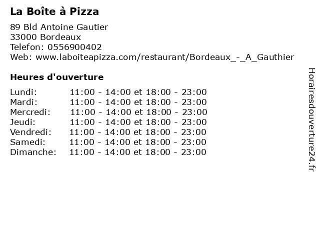 Lundi | 11:00-14:00 et 18:00-23:00 |