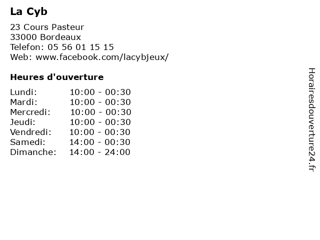 | Samedi | 14:00-00:30 |