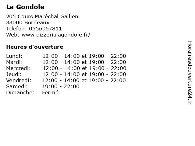 | Jeudi | 12:00-14:00 et 19:00-22:00 |