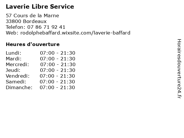 1 Laverie Libre Service (Distance: 0,10 km) 8 Cours de l'Yser, 33800 Bordeaux automatique, lavage, laverie, libre, service, séchage 2 Laverie Libre Service (Distance: 0,48 km) - Place Pierre Jacques Dormoy, 33800 Bordeaux automatique, lavage, laverie, libre, service, séchage 3 Laverie Libre Service (Distance: 6,58 km) 104 Avenue de Magudas, 33700 Mérignac automatique, lavage, laverie, libre, service, séchage 4 Laverie Libre Service (Distance: 12,29 km) 28 Avenue Montaigne, 33160 Saint-Médard-en-Jalles automatique, lavage, laverie, libre, service, séchage 5 SNCF Borne Libre Service (Distance: 1,06 km) 82 Rue Sainte Catherine, 33000 Bordeaux borne, libre, service, services, sncf, voyages 6 Thevenin & Ducrot - Avia (libre service 24/24) (Distance: 5,24 km) 313 Avenue de la Liberation, 33110 Le Bouscat 24/24, accessoires, avia, ducrot, libre, motos, service, services, stations, thevenin, voitures |