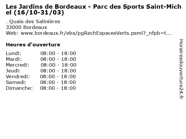 Termes de recherche pour Les Jardins de Bordeaux - Parc des Sports Saint-Michel (16/10-31/03):les, de, bordeaux, saint, des, mairie, services, michel, jardin, sports, parc, jardins, 31/03, 16/10 |