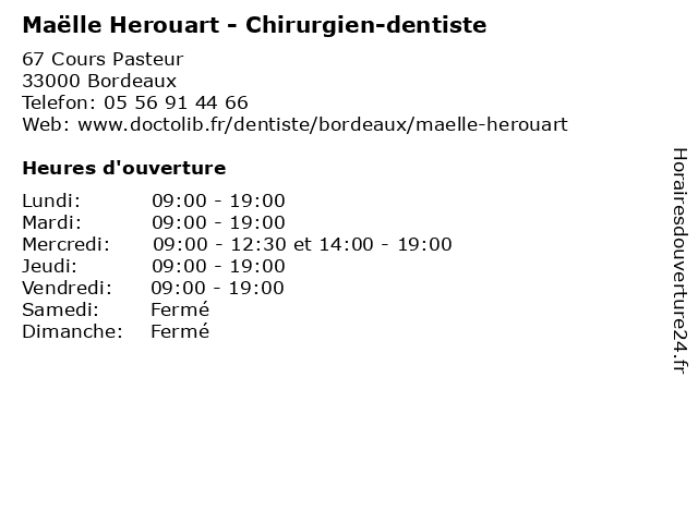 | Mercredi | 09:00-12:30 et 14:00-19:00 |