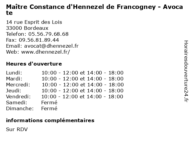 | Lundi | 10:00-12:00 et 14:00-18:00 |