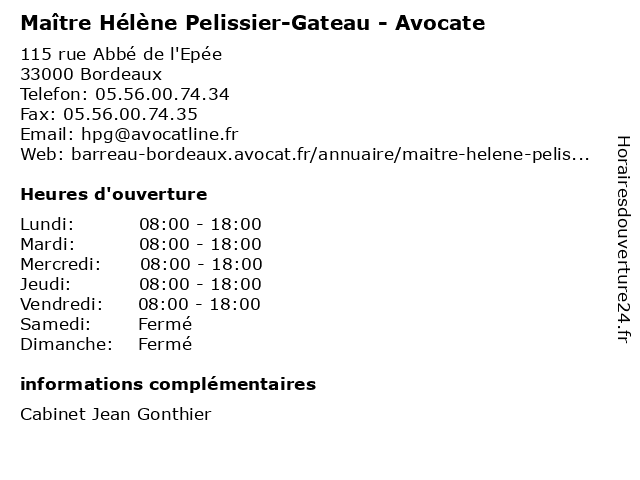 1 Maître Marie-Hélène Besse - Avocate (Distance: 0,16 km) 23 rue Thiac, 33000 Bordeaux avocate, avocats, besse, civils, droits, hélène, juridiques, marie, maître 2 Dr Hélène Gardet - Chirurgien plasticien et esthét (Distance: 0,26 km) 68 Rue du Palais Gallien, 33000 Bordeaux chirurgie, chirurgien, dr, esthét, et, gardet, general, hélène, plasticien, soins 3 Maître Hélène Martel - Avocate (Distance: 0,36 km) 45 Place des Martyrs de la Résistance, 33000 Bordeaux avocate, avocats, civils, droits, hélène, juridiques, martel, maître 4 Maître Hélène Dufourg - Avocate (Distance: 0,43 km) 12 rue du Professeur Demons, 33000 Bordeaux avocate, avocats, civils, droits, dufourg, hélène, juridiques, maître 5 Maître Hélène Seurin - Avocate (Distance: 0,55 km) 11 rue Boudet, 33000 Bordeaux avocate, avocats, civils, droits, hélène, juridiques, maître, seurin 6 Maître Hélène Poulou - Avocate (Distance: 0,59 km) 2 rue Franklin, 33000 Bordeaux avocate, avocats, civils, droits, hélène, juridiques, maître, poulou |