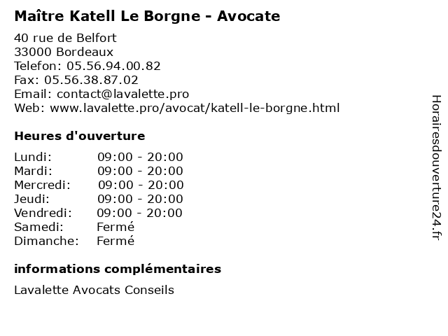 1 Maître Emilie Le Borgne - Avocate (Distance: 0,63 km) 57 Bis Cours Pasteur, 33000 Bordeaux avocate, avocats, borgne, civils, droits, emilie, juridiques, le, maître 2 Coustet Décoration Katell Eyhartz (Distance: 53,66 km) 49 Place de la Cathédrale, 33430 Bazas coustet, décoration, eyhartz, katell 3 Maître Isabelle Berrie - Avocate (Distance: 0,00 km) 40 rue de Belfort, 33000 Bordeaux avocate, avocats, berrie, civils, droits, isabelle, juridiques, maître 4 Maître Laurence Barre - Avocate (Distance: 0,00 km) 40 rue de Belfort, 33000 Bordeaux avocate, avocats, barre, civils, droits, juridiques, laurence, maître 5 Maître Pauline Tellechea - Avocate (Distance: 0,00 km) 40 rue de Belfort, 33000 Bordeaux avocate, avocats, civils, droits, juridiques, maître, pauline, tellechea 6 Maître Marine Gautreau - Avocate (Distance: 0,00 km) 40 rue de Belfort, 33000 Bordeaux avocate, avocats, civils, droits, gautreau, juridiques, marine, maître |