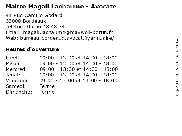 | Lundi | 09:00-13:00 et 14:00-18:00 |