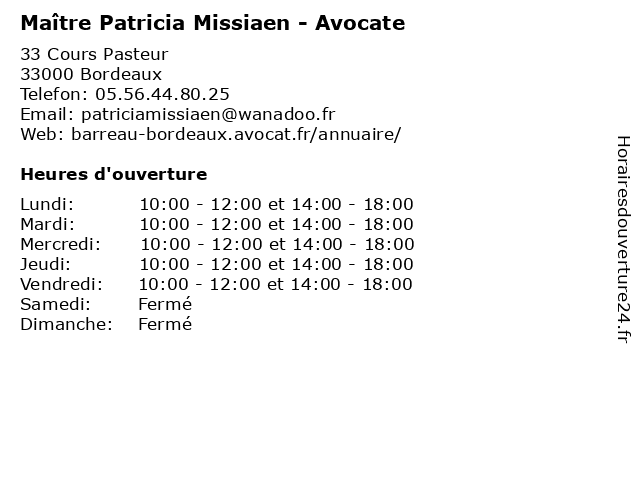 | Lundi | 10:00-12:00 et 14:00-18:00 |