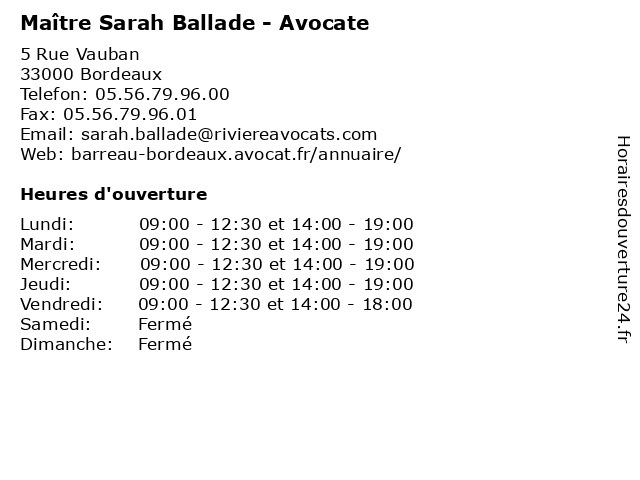 | Lundi | 09:00-12:30 et 14:00-19:00 |