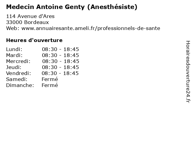 | Jeudi | 08:30-18:45 |