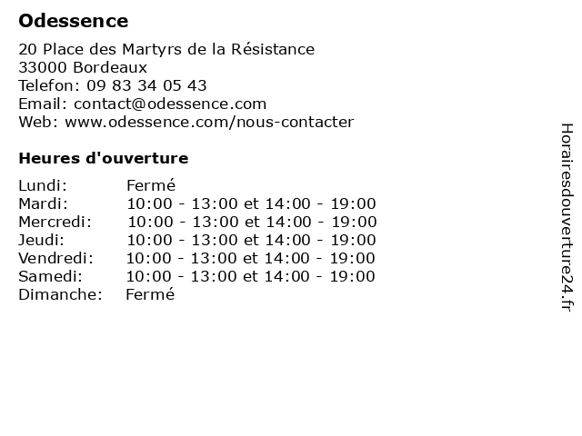 | Samedi | 10:00-13:00 et 14:00-19:00 |