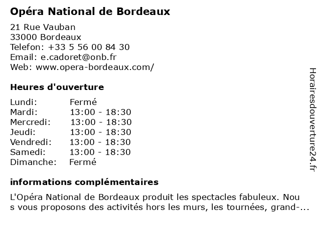 1 Comptoir National de l'Or Bordeaux (Distance: 0,59 km) 8 Rue Jean Jacques Rousseau, 33000 Bordeaux bordeaux, comptoir, de, l'or, national 2 Hotel de L'Opéra (Distance: 0,60 km) 35 Rue Esprit des Lois, 33300 Bordeaux bar, de, hotel, l'opéra, restaurant, service 3 Parfumerie de L'Opéra (Distance: 0,61 km) 10 b Allée De Tourny, 33000 BORDEAUX de, l'opéra, parfumerie 4 Opéra Puy Paulin-Salon de Thé (Distance: 0,81 km) 7 Place Puy Paulin, 33000 Bordeaux boissons, chocolat, confiserie, de, opéra, paulin, puy, pâtisserie, salon, thé 5 Opéra Puy Paulin (Distance: 0,81 km) 7 place Puy Paulin, 33000 Bordeaux boulangerie, chocolat, confiserie, opéra, paulin, puy, traiteur 6 Musée national des Douanes (Distance: 0,92 km) 1 Place de la Bourse, 33000 Bordeaux des, douanes, musée, national |