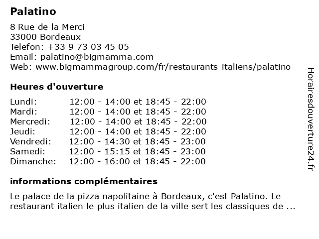 | Mardi | 12:00-14:00 et 18:45-22:00 |