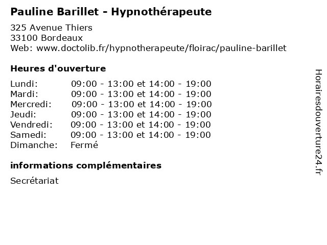 | Lundi | 09:00-13:00 et 14:00-19:00 |