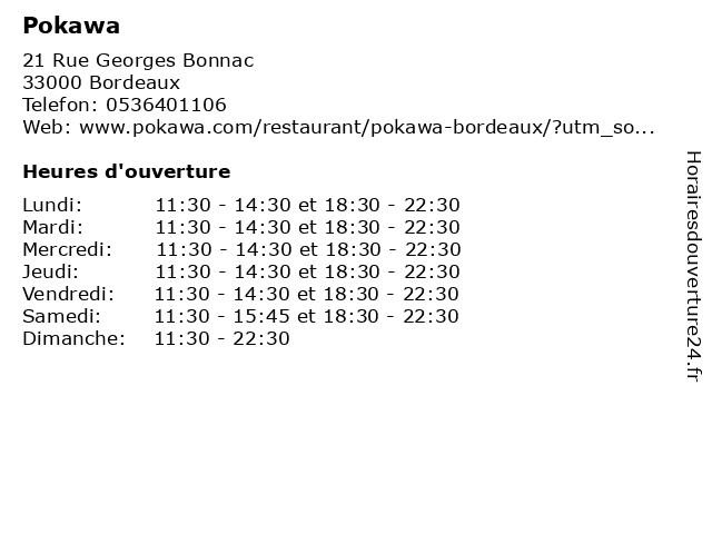 | Samedi | 11:30-15:45 et 18:30-22:30 |