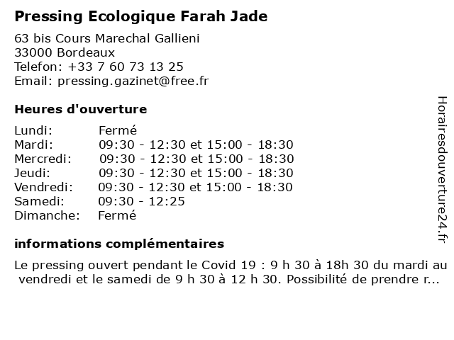 | Jeudi | 09:30-12:30 et 15:00-18:30 |