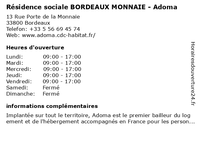 Termes de recherche pour Résidence sociale BORDEAUX MONNAIE - Adoma:bordeaux, résidence, monnaie, sociale, adoma |