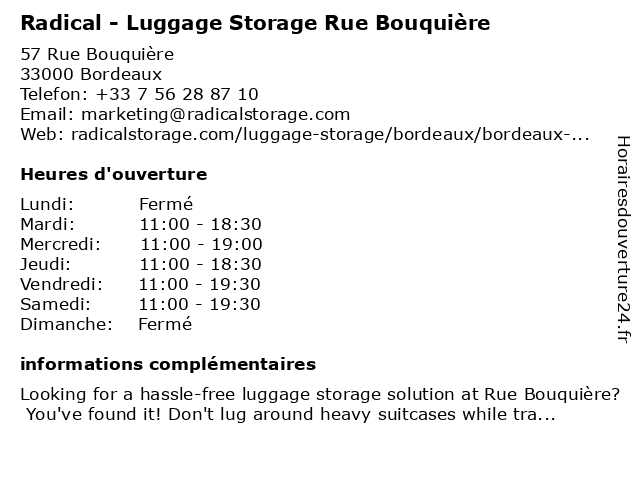 Termes de recherche pour Radical - Luggage Storage Rue Bouquière:rue, radical, luggage, storage, luggage storage, luggage storage near me, bouquière |