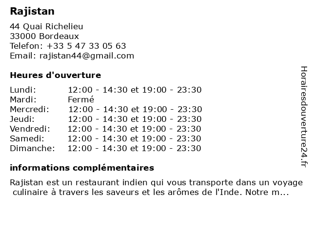 | Dimanche | 12:00-14:30 et 19:00-23:30 |