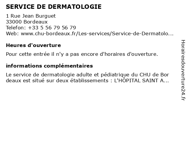 | Appeler SERVICE DE DERMATOLOGIE | |