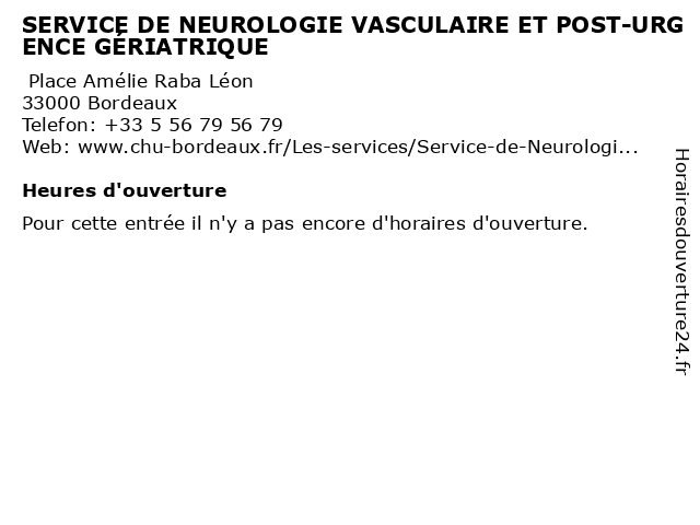 | Appeler SERVICE DE NEUROLOGIE VASCULAIRE ET POST-URGENCE GÉRIATRIQUE | |