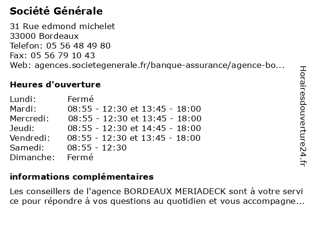 1 Société Générale (Distance: 0,43 km) 28 Cours de l'intendance, 33000 Bordeaux association d'épargne et de crédit, atm, conseil en crédit, générale, organisme d'assurance auto, organisme d'assurance moto, organisme d'assurance-habitation, organisme d'assurance-vie, société 2 Société Générale (Distance: 1,11 km) 7 Cours alsace-lorraine, 33000 Bordeaux association d'épargne et de crédit, atm, conseil en crédit, générale, organisme d'assurance auto, organisme d'assurance moto, organisme d'assurance-habitation, organisme d'assurance-vie, société 3 Société Générale (Distance: 1,33 km) 10 Place de la victoire, 33000 Bordeaux association d'épargne et de crédit, atm, conseil en crédit, générale, organisme d'assurance auto, organisme d'assurance moto, organisme d'assurance-habitation, organisme d'assurance-vie, société 4 Société Générale (Distance: 1,51 km) 53B Cours DE LA MARNE, 33800 BORDEAUX agence, devis d'assurance automobile, générale, prêt à domicile, prêt à la consommation, société 5 Société Générale (Distance: 1,67 km) 44 BD GEORGE V, 33000 Bordeaux agence, devis d'assurance automobile, générale, prêt à domicile, prêt à la consommation, société 6 Société Générale (Distance: 1,74 km) 22 Place stalingrad, 33100 Bordeaux association d'épargne et de crédit, atm, conseil en crédit, générale, organisme d'assurance auto, organisme d'assurance moto, organisme d'assurance-habitation, organisme d'assurance-vie, société |