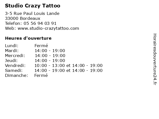 | Vendredi | 10:00-13:00 et 14:00-19:00 |