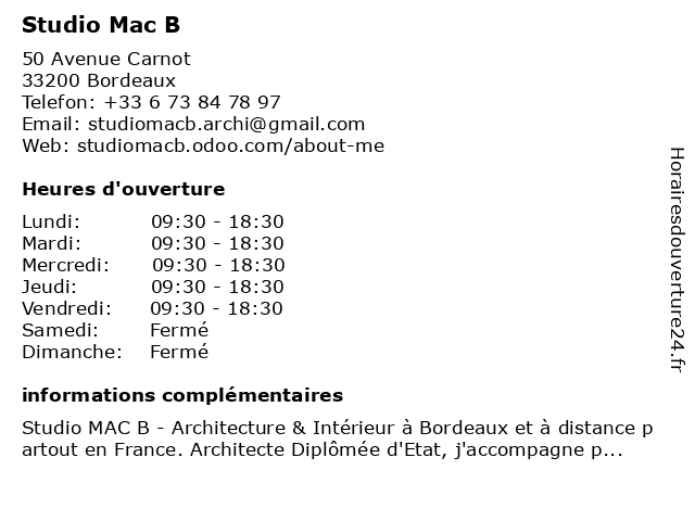 | Lundi | 09:30-18:30 |
