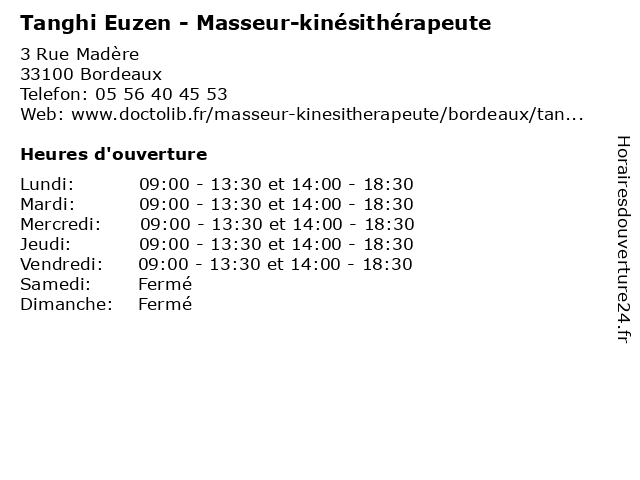 | Mardi | 09:00-13:30 et 14:00-18:30 |
