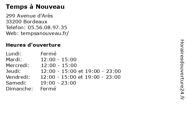 Jeudi | 12:00-15:00 et 19:00-23:00 |