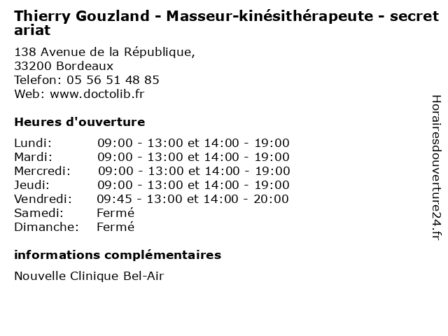 Termes de recherche pour Thierry Gouzland - Masseur-kinésithérapeute - secretariat:thierry, medecine, medical, secretariat, traitement, médecin, masseur, pharmaceutique, kinésithérapeute, gouzland |