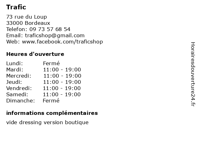 1 Cache Cache (Distance: 0,23 km) 145 Rue Sainte-Catherine, 33000 Bordeaux blazer femme, boutique vêtement, cache, cache cache, cardignan femme, chaussures femme, gilet femme, jean femme, magasin vêtement, manteau femme, mode femme, pull femme, robe femme, sac femme, t-shirt femme, tailleur femme, top femme, vêtement femme 2 Etam Prêt-à-porter (Distance: 0,34 km) 20 Rue Sainte Catherine, 33000 Bordeaux accessoires, chaussures, etam, femme, lingerie, magasin, porter, prêt, vêtement 3 Parking Gare Saint Jean (Distance: 0,43 km) - Gare Saint Jean, 33000 Bordeaux gare, jean, parking, saint, souterrain, trafic, voiture 4 Papa Pique et Maman Coud (Distance: 0,43 km) 84 Rue de la Porte Dijeaux, 33000 Bordeaux accessoires, boutique, coud, enfant, et, femme, maman, papa, pique, vêtement 5 Parking Place Pey Berland (Distance: 0,52 km) - Rue Edmond Michelet, 33000 Bordeaux berland, parking, pey, place, souterrain, trafic, voiture 6 Dépôt-Vente Laurence D (Distance: 0,72 km) 18 Rue Jean Jacques Rousseau, 33000 Bordeaux accessoires, achat, boutique, dépôt, laurence, occasion, vente, vêtement |