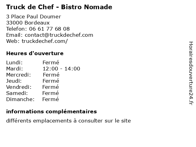 Termes de recherche pour Truck de Chef - Bistro Nomade:restaurant, de, alimentation, brasserie, terrasse, chef, bistro, truck, parking, nomade |